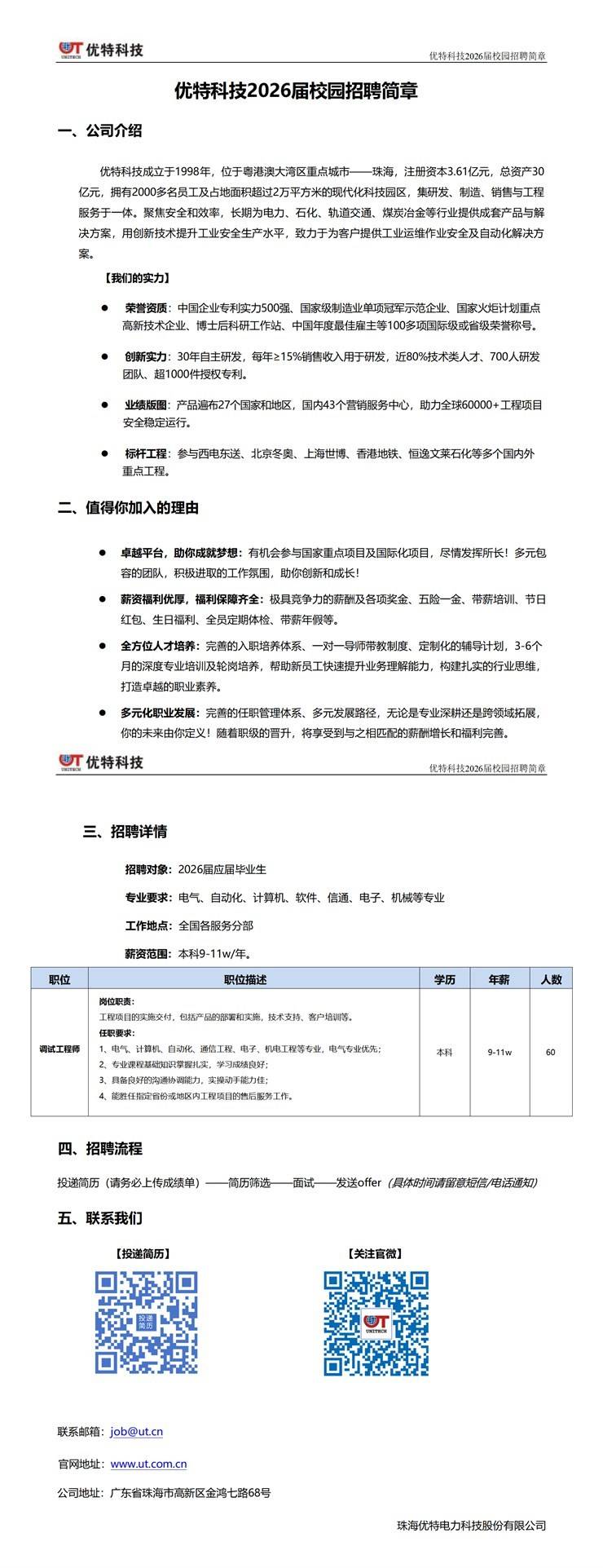 宣讲主题:优特电力科技股份有限公司2026届校园招聘 查看详情