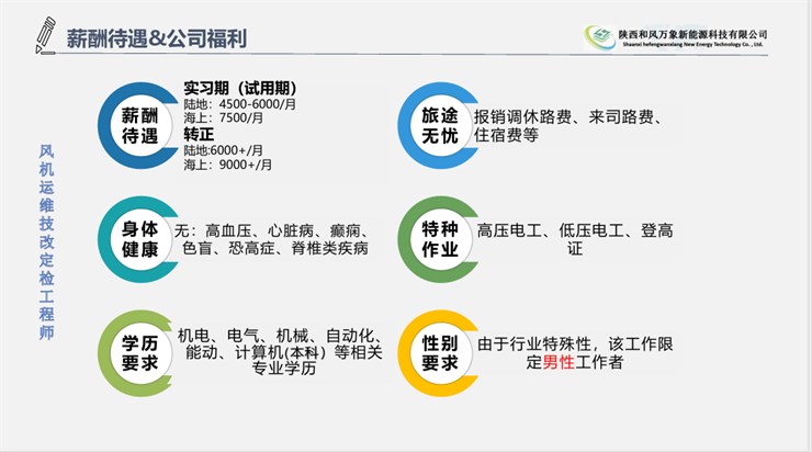 1、岗位优势:从风电行业的入门级岗位开始,通过对安全知识的学习、风力发电机组工作基本知识的学习,再到对电器原理的学习。简单易学,熟悉风机过程较快,只需持低压电工证和登高作业证便可轻松上岗。