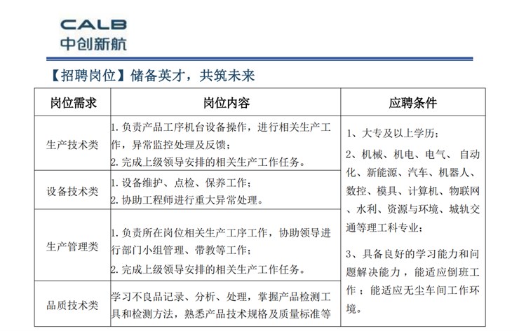 招聘单位:国企-中创新航科技集团股份有限公司
