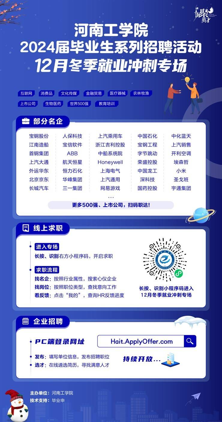 招聘单位:12月冬季就业冲刺专场 | 河南工学院2024届毕业生系列招聘活动